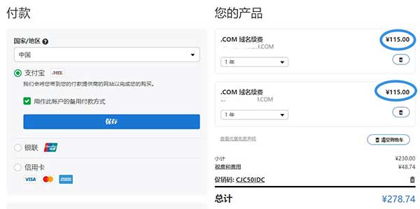 第二年網(wǎng)站域名續(xù)費(fèi)的時(shí)候發(fā)現(xiàn),網(wǎng)站域名價(jià)格是國內(nèi)域名續(xù)費(fèi)的2倍左右,真實(shí)一個(gè)不小的坑,不少站長選擇尋找優(yōu)惠碼,但是能優(yōu)惠的優(yōu)惠碼鳳毛麟角,所以還是不得不繼續(xù)高額續(xù)費(fèi)。